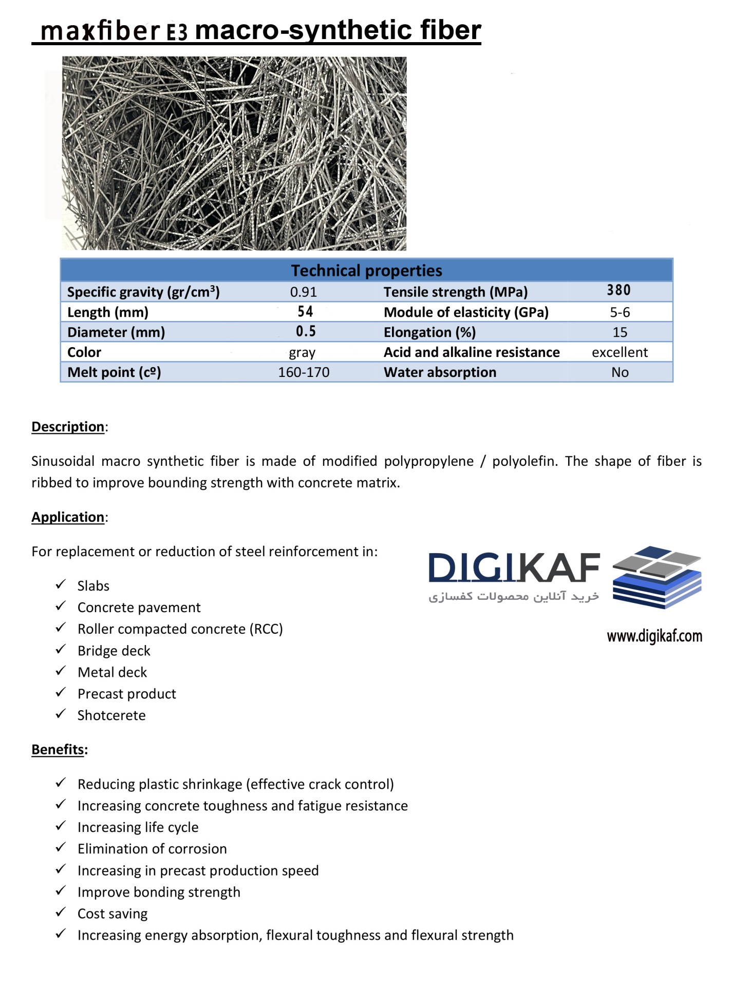 الیاف MAXFIBER 3ECO مکس فایبر 3 اکو ( الیاف جایگزین میلگرد حرارتی )